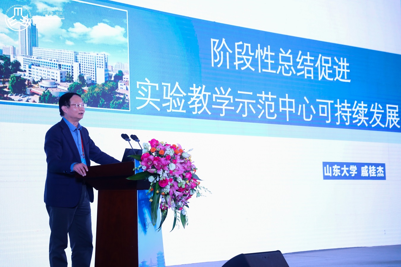 高等学校国家级实验教学示范中心联席会经济管理学科组组长、山东大学商学院院长戚桂杰在题为“阶段性总结促进实验教学示范中心可持续发展”的主题报告中深度解读了《国家级实验教学示范中心管理办法》,从资金投入、建设面积、设备总值、在线课程等多个方面就国家级实验教学示范中心的建设情况和可持续发展进行了阶段性总结,并以山东大学管理学科实验中心为例,分析了部分高校示范中心建设成果。