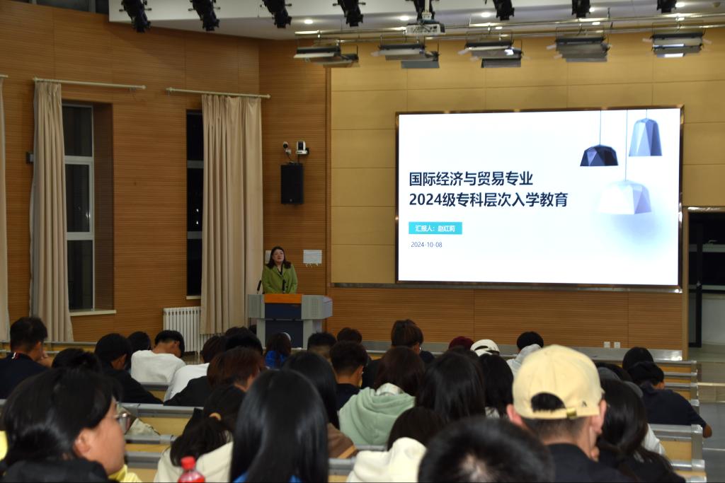院长助理任宁、国际经济与贸易教研室主任赵红莉、国际商务和跨境电商教研室主任宋雅馨分别在7111、8106教室主持入学专业教育。