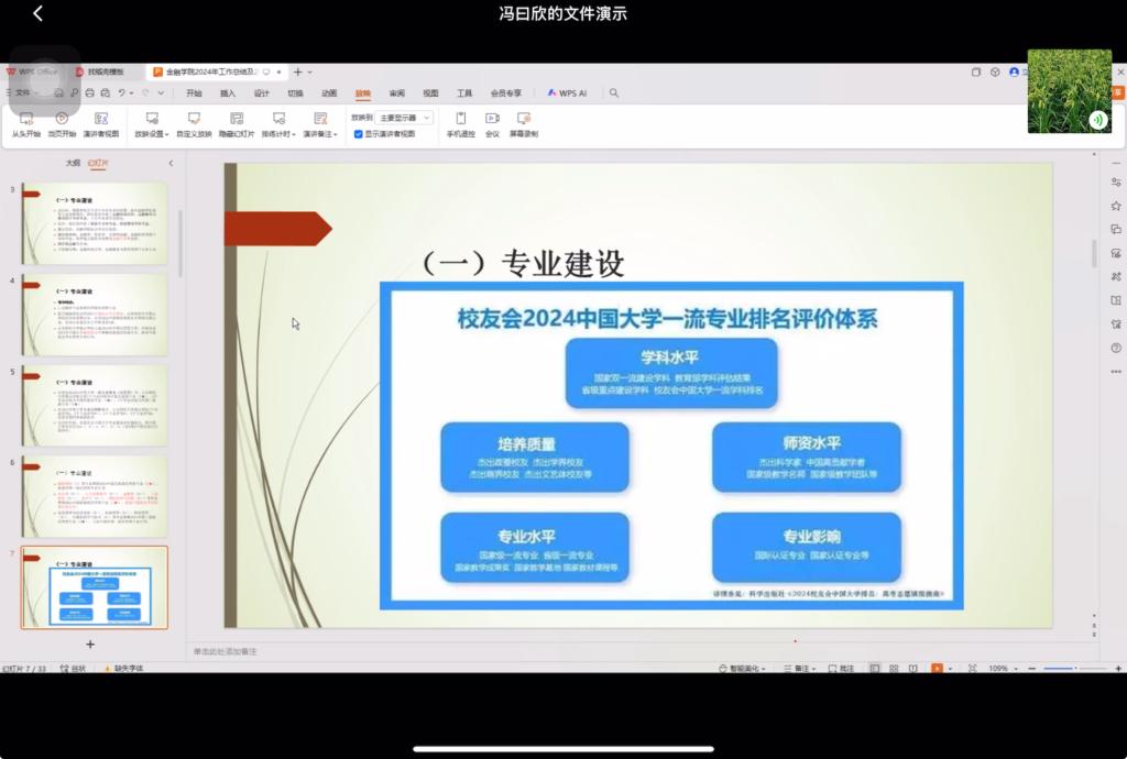 2025年3月4日19:00,金融学院通过微信视频会议的形式,召开了主题为“2024年工作总结及2025年工作计划”的重要会议。本次会议由金融学院院长冯曰欣主持,金融学院全体专任教师及辅导员参会,共同回顾过去一年的成果与不足,并展望新一年的工作方向与目标。