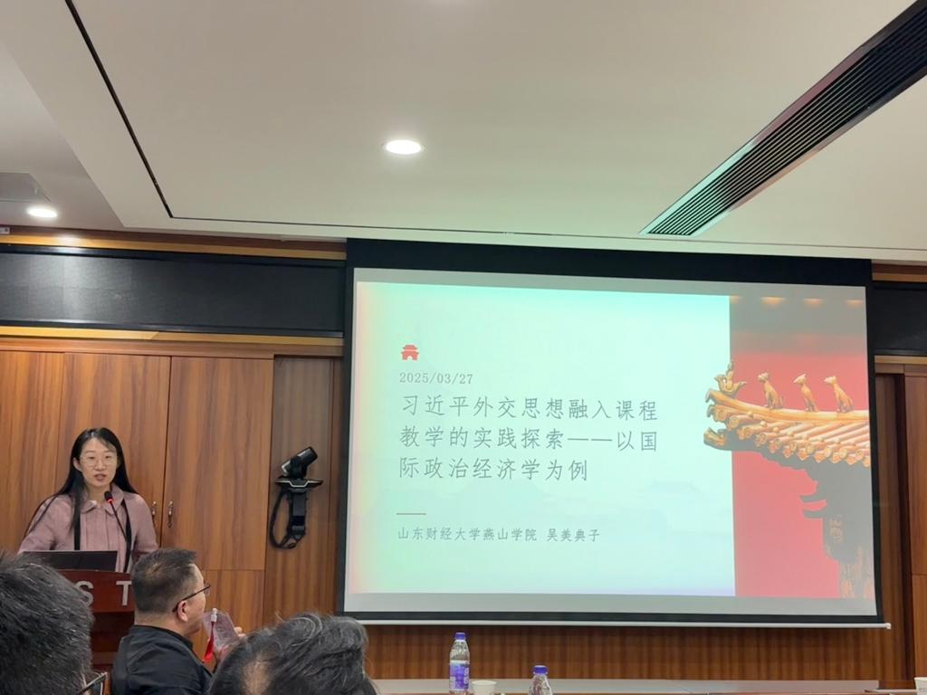我校教师吴美典子以“习近平外交思想融入课程教学的实践探索——以国际政治经济学为例”为主题,从习近平外交思想是国际政治经济学课程之“盐”、习近平外交思想融入国际政治经济学教学体系、实践探索:高效课程思政实施策略等三方面在“课程思政实践探索”分会场作了学术交流报告。