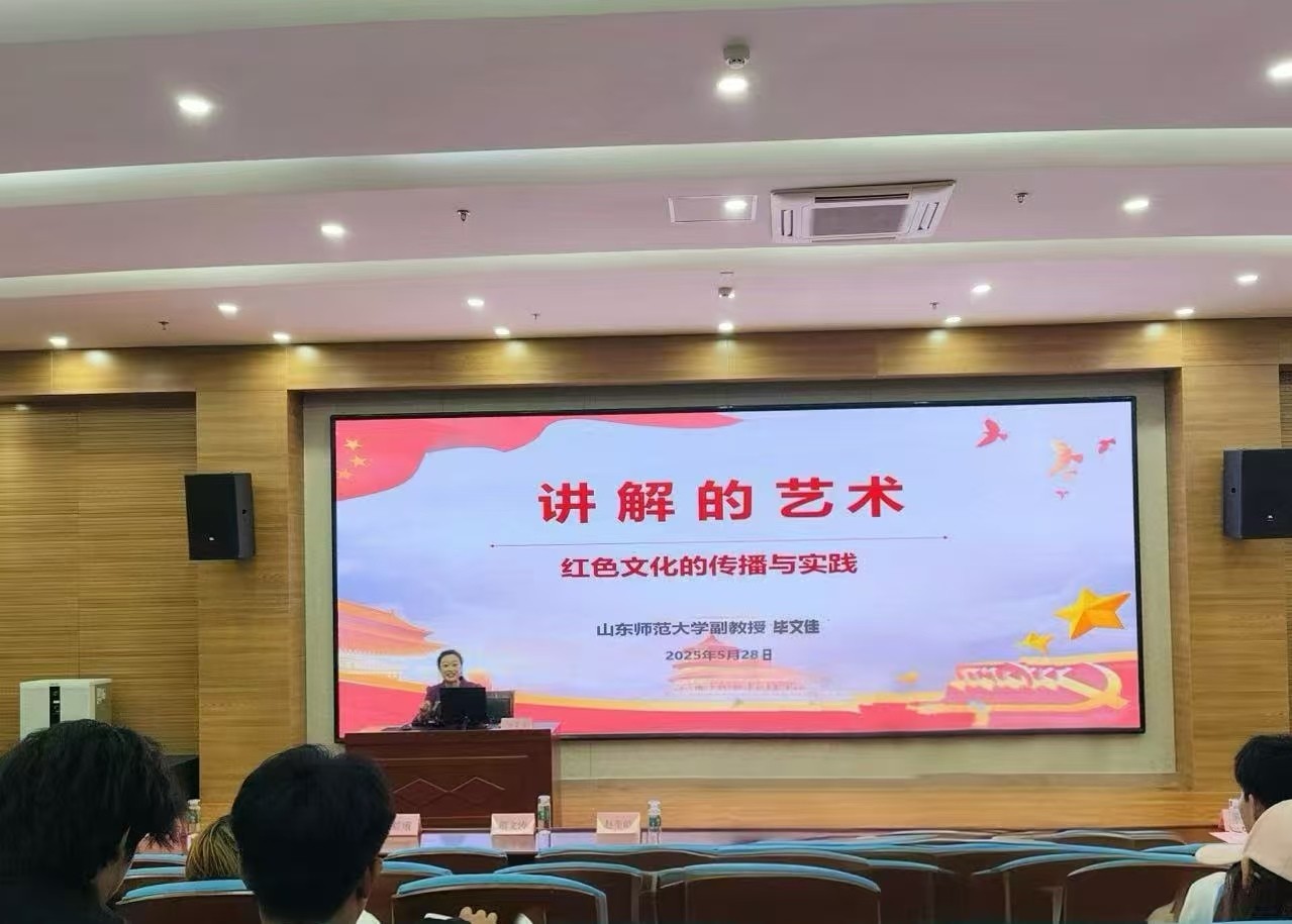 5.28日下午,山东师范大学副教授毕文佳老师在山东财经大学燕山学院图书馆报告厅举办了一场题为《讲解的艺术——红色文化的传播与实践》的专题讲座,吸引了众多师生及文化爱好者前来聆听学习,现场气氛热烈,反响强烈。