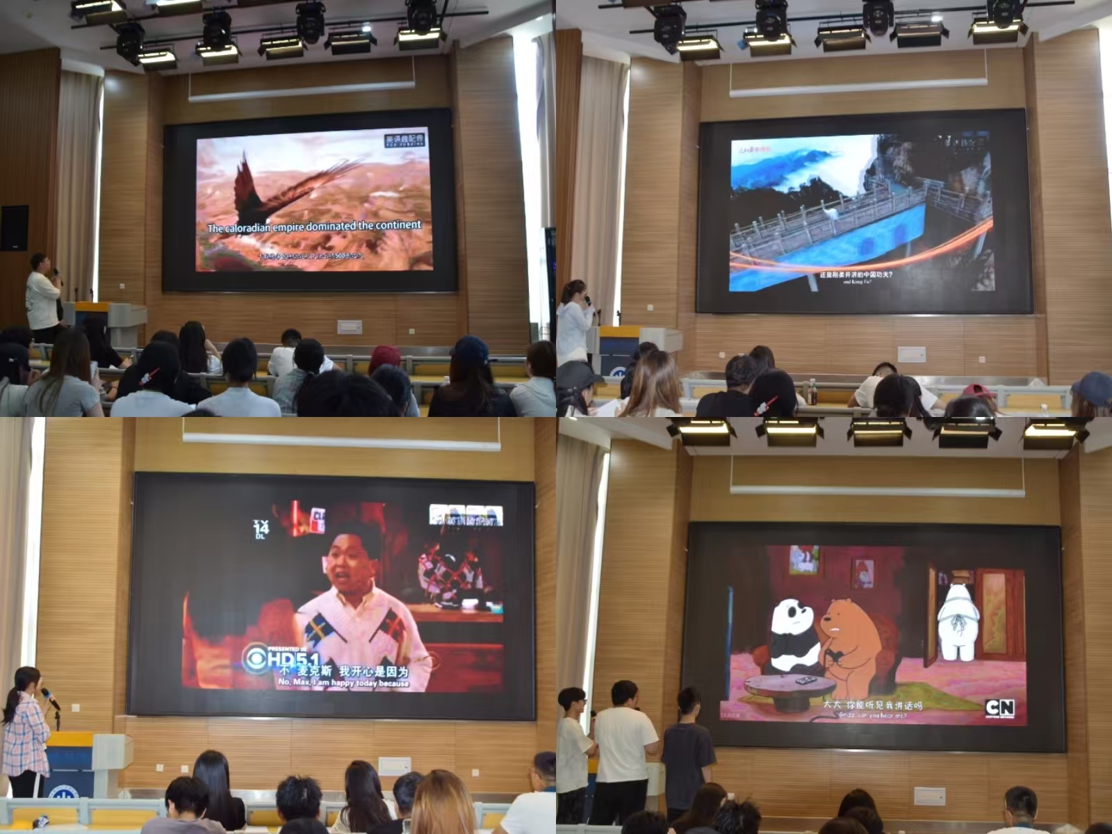 本次大赛吸引了国际商学院22组选手同台竞技,涵盖个人与团队两种形式。参赛作品题材多元,既有《疯狂动物城》、《小王子》等经典动画,也有《中华文明国际形象网宣片》、《话说中国节:中国春节》等文化主题片段,更有《Barbie Vlog》等创意改编作品。选手们凭借精准的发音、自然的语调、生动的情绪表达及富有创意的角色塑造,将配音片段与画面完美融合,充分展现了扎实的英语功底和艺术表现力。