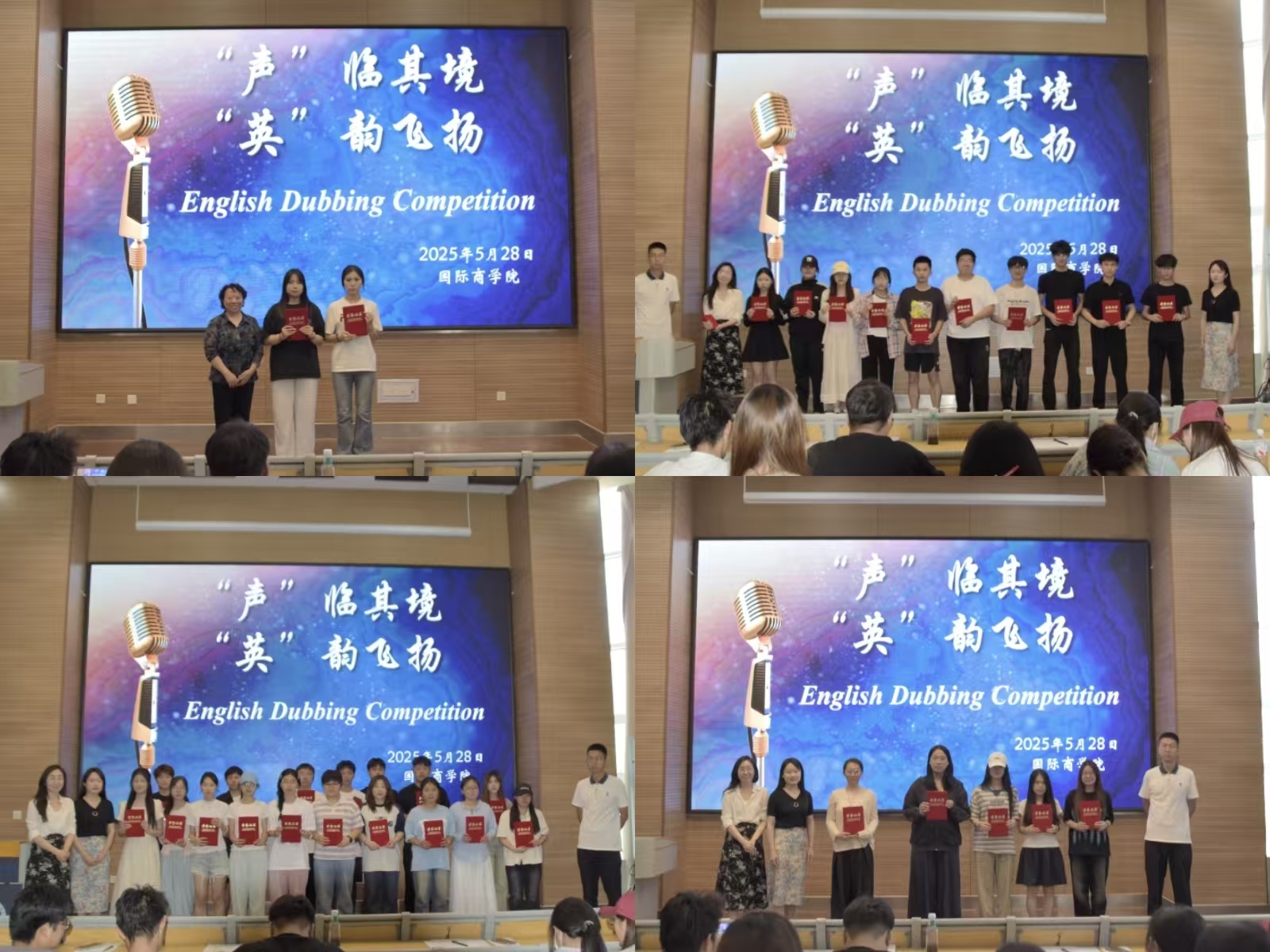 为激发学生英语学习热情,提升口语实践能力,2025年5月28日,山东财经大学燕山学院国际商学院于7111教室成功举办2025年度校园英语配音大赛。院长毕红毅、专任老师杨蕾、教研室主任宋雅馨、辅导员唐行之受邀担任评委,与百余名师生共同见证了一场英语语言艺术的视听盛宴。