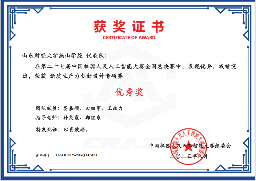 近日,第二十七届中国机器人及人工智能大赛全国总决赛圆满落幕。我校3支参赛团队表现优异,获得国家优秀奖1项,省级三等奖2项。