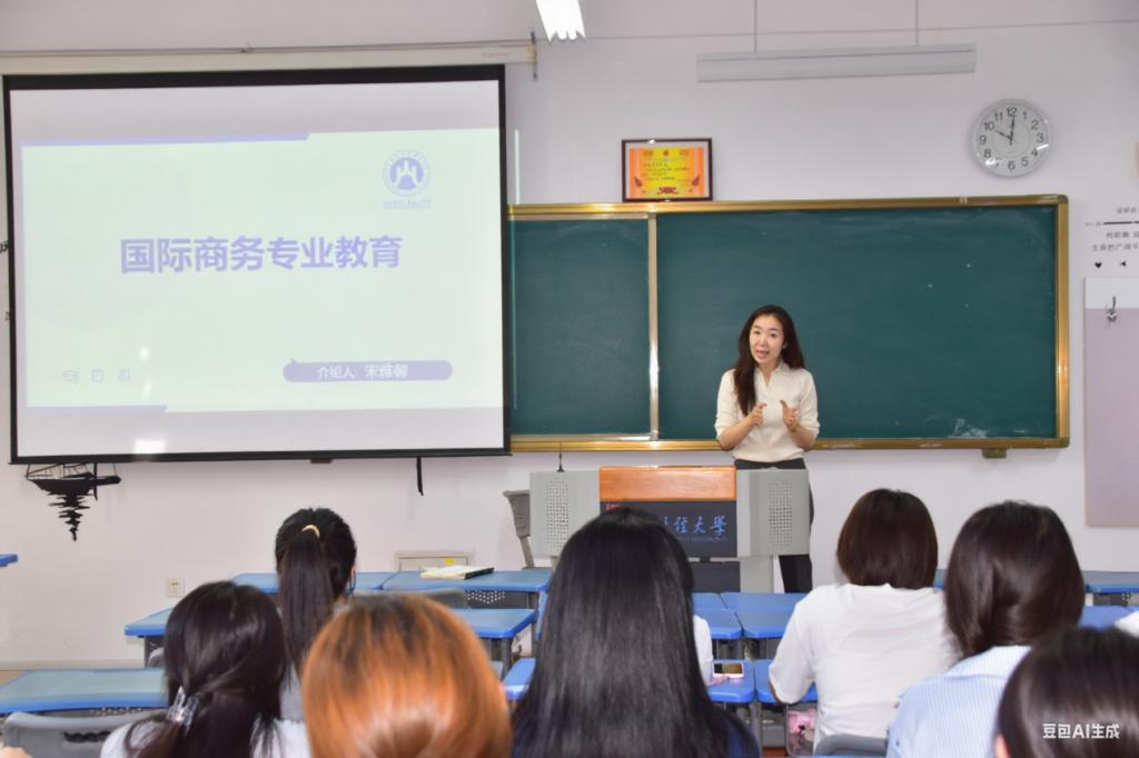入学专业教育系列活动期间,国际商学院院长毕红毅、院长助理任宁、国际商务教研室主任宋雅馨、跨境电商教研室主任魏丹丹、商务英语教研室主任杨蕾、国际经济与贸易教研室主任孙园园和数字经济教研室主任刘婷钰分别在6303、 8106 、6305等教室,结合不同专业特色开展入学教育,聚焦专业核心课程与就业升学方向,指导新生提前规划职业路径。