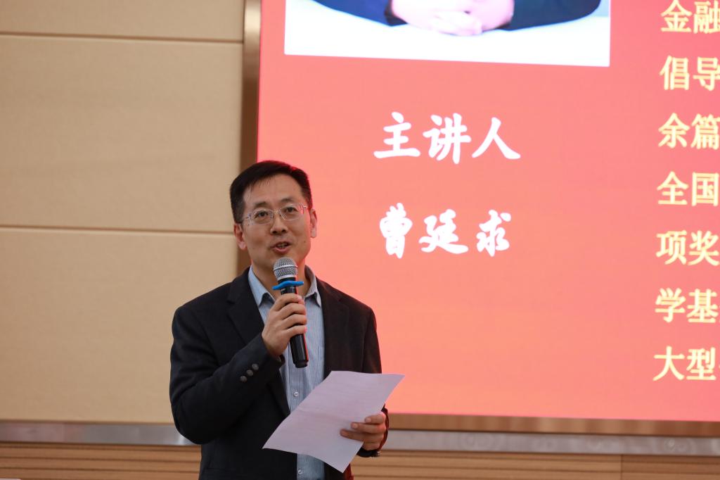 开场环节,李学峰副院长对曹廷求教授的学术背景与研究成就进行了详细介绍。曹教授作为国家社科基金重大招标项目首席专家、教育部新世纪优秀人才、“泰山学者”特聘教授,长期聚焦公司治理、银行治理、系统性金融风险及结构性货币政策领域,是国内金融机构公司治理研究的率先倡导者。其学术成果丰硕,累计发表SSCI、CSSCI论文100余篇,曾获首届孙冶方金融创新奖、全国优秀博士论文提名奖等多项重量级奖项,主持2项国家社科基金重大招标项目、2项国家自然科学基金面上项目,并为多家大型企业、银行及政府部门提供咨询服务,学术影响力与实践经验兼具。
