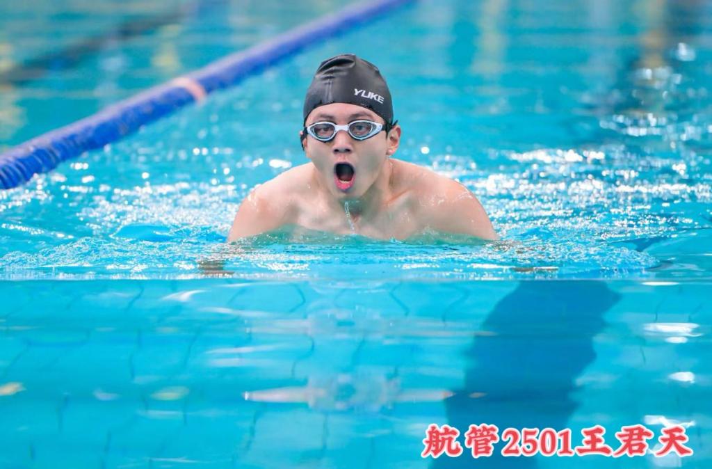 作为首次亮相市级游泳赛事的驻济高校代表队伍,队员们在比赛中展现出极强的竞技潜力与团队凝聚力。在男子甲组100米蛙泳决赛中,纪锦辉同学起跳精准、划水有力,以流畅的动作节奏始终保持领先优势,斩获首枚金牌;孙文杰同学最终以微弱差距惜败强敌获得铜牌;男子50米自由泳项目中刘杰同学凭借规范的动作技术与顽强的冲刺表现斩获铜牌;男子 200 米蛙泳赛场同样传来捷报,纪锦辉同学凭借稳定的发挥与出色的耐力突破重围,成功将另一枚金牌收入囊中,刘杰同学也不甘示弱,最终争得一枚铜牌,王君天同学荣获第四名的好成绩。