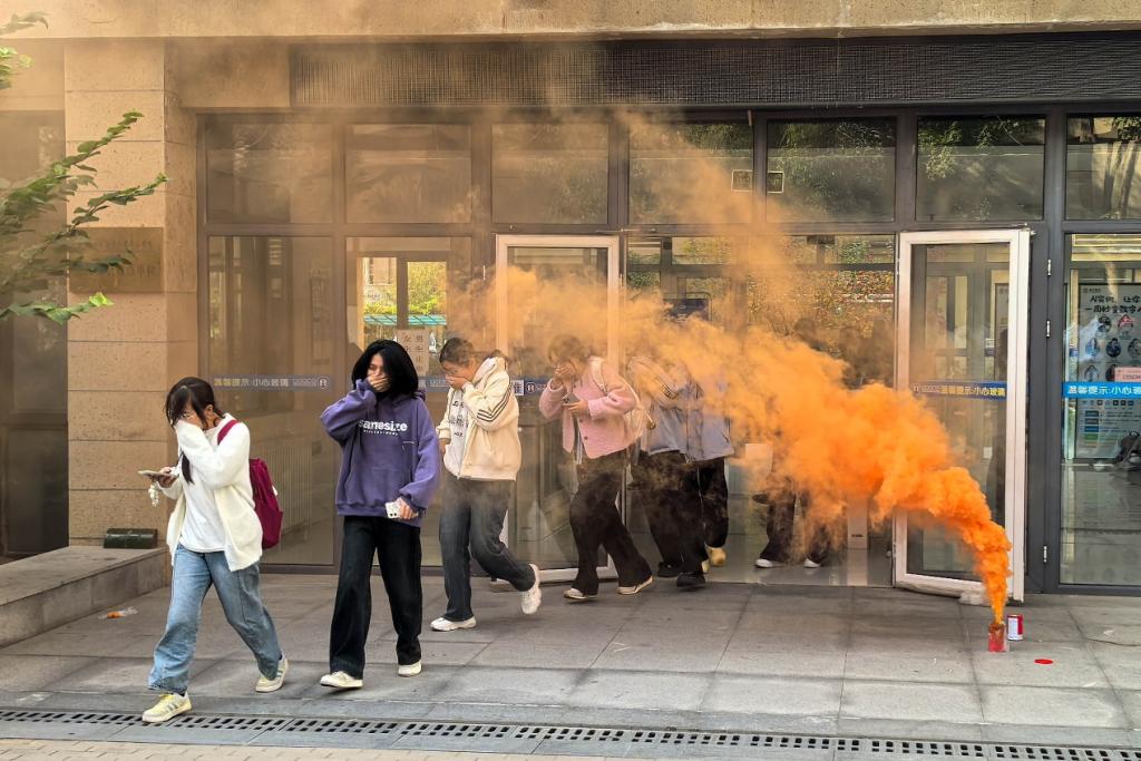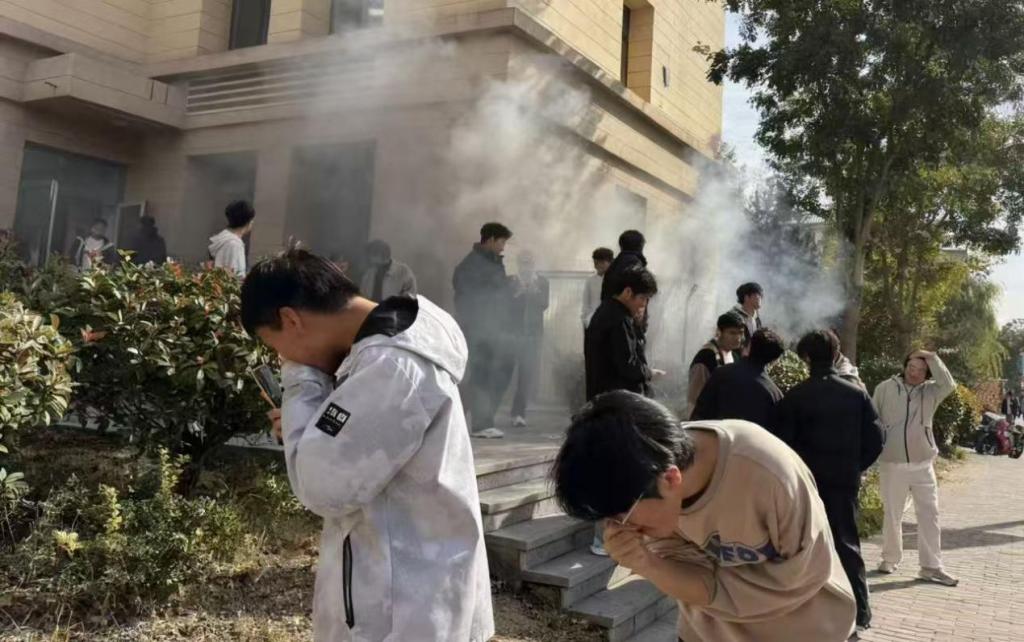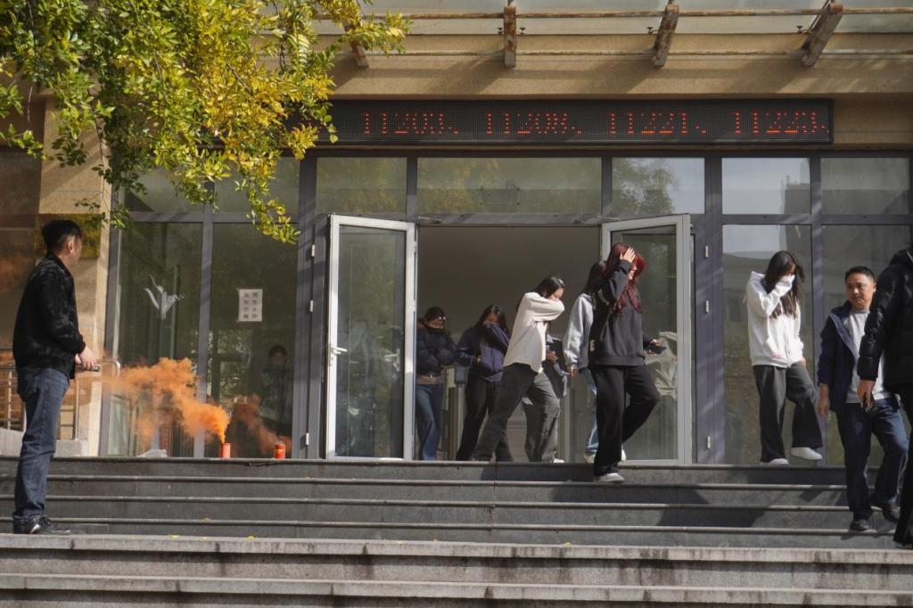 演练模拟宿舍楼一层连廊配电间发生“火情”,随着手动报警器的响起和消防烟雾罐的启动,各楼层迅即进入应急状态。学生在辅导员、宿管人员及学生安全员的引导下,按照预定疏散路线,低姿捂口鼻,迅速有序撤离至室外安全区域。整个过程组织严密、响应迅速,未发生拥挤、踩踏等意外。疏散工作结束后,全体人员在确认各项流程均已完成的情况下,依照指引有序撤离演练区域。