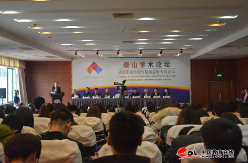 中国教育在线讯 12月2日,由山东省教育厅主办、山东财经大学承办、山东省行政管理学会协办的“泰山学术论坛——政府职能转变与智慧监管专题论坛”在山东财经大学隆重开幕。本次会议为期1天半,来自全国著名高等院校、科研院所、报刊、杂志的近20名专家、学者围绕“政府职能转变与智慧监管”这一主题展开深入交流与讨论。