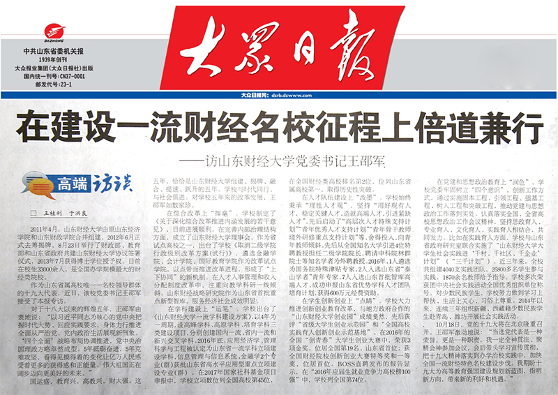国运盛,教育兴。高教兴,财大强。这五年,恰恰是山东财经大学组建、揭牌、融合、提速、跃升的五年。学校与时代同行,与社会俱进。对学校五年来的改革发展,王邵军如数家珍。