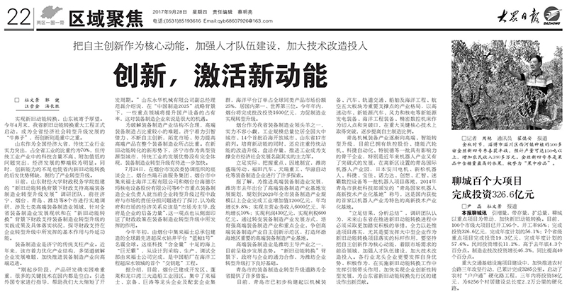 实现新旧动能转换,山东被寄予厚望。今年4月末,我省新旧动能转换重大工程正式启动,成为全省经济社会转型升级发展的“牛鼻子”,而创新则是重中之重。