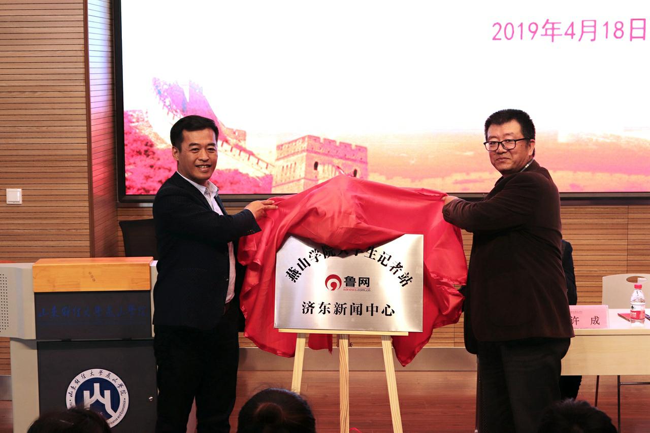 4月18日上午,鲁网·燕山学院大学生记者站成立暨揭牌仪式在山东财经大学燕山学院举办。莱芜区鹏泉街道团委副书记毕京芳,山东财经大学燕山学院党委书记王松、党政办公室主任蔡文春,鲁网济东新闻中心主任孟令海、副主任许成参加仪式,并为大学生记者站揭牌。