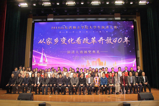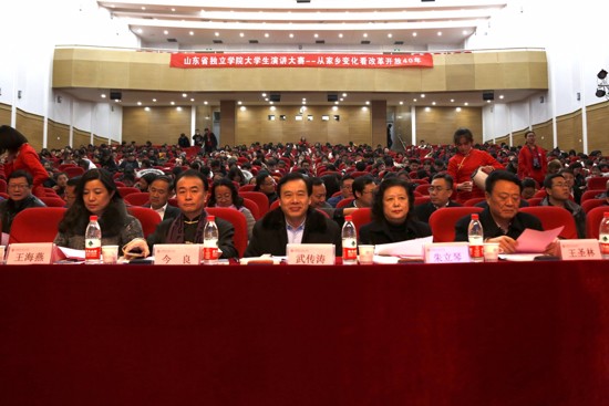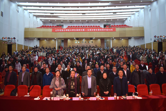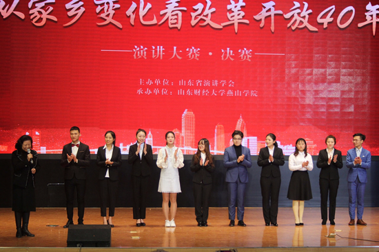 舜网讯 12月15日,来自全省10所独立学院的30名演讲选手,齐聚山东财经大学燕山学院莱芜校区,参加由山东财经大学燕山学院与山东省演讲学会同策划主办的“从家乡变化看改革开放40年”主题演讲比赛。本次大赛旨在引领大学生深情回望改革开放给家乡面貌带来的巨大变化,深刻感受党领导中国人民改革开放四十年所取得的伟大成就,激励青年学生不忘初心、牢记使命、砥砺前行,以更加积极的心态、更加主动的姿态,拥抱新时代、投身新时代、建功新时代。