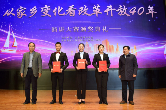 莱芜市委常委、宣传部部长刘洪海,山东财经大学党委副书记车滨,以及莱芜市文广新局、国资委、教育局,山东财经大学规划处、宣传部、学工部,山东财经大学燕山学院理事会,山东省演讲学会,中国教育报山东站,山东教育报等有关单位的领导出席演讲比赛决赛并为获奖选手颁奖。