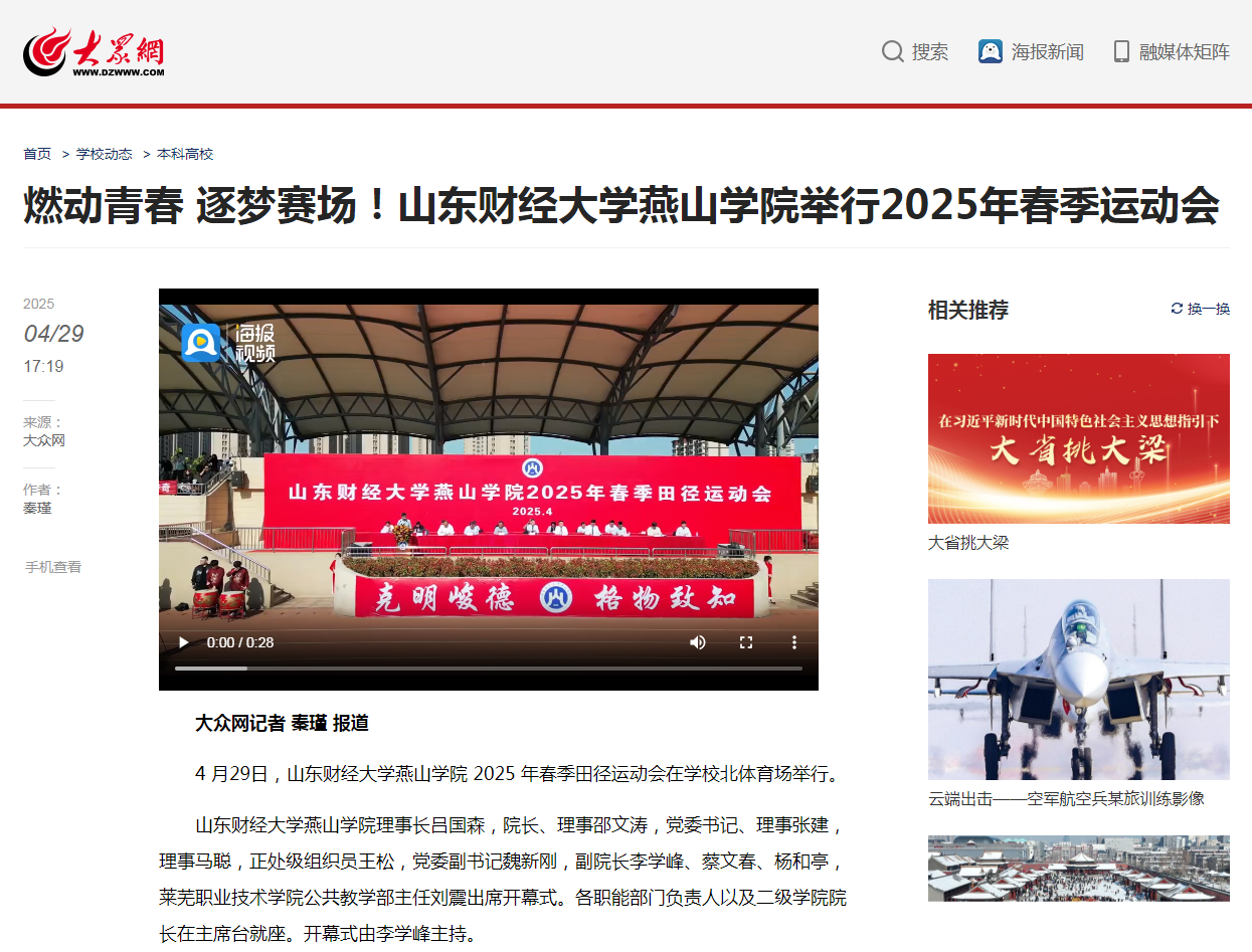 4 月29日,山东财经大学燕山学院 2025 年春季田径运动会在学校北体育场举行。
