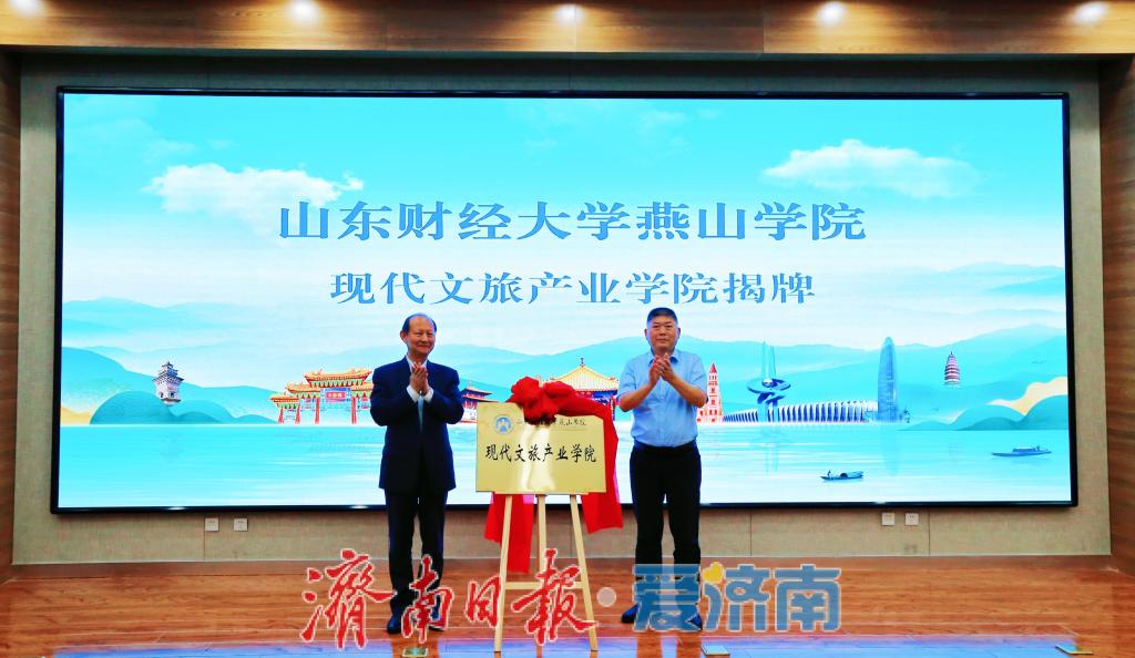 会上,山东财经大学燕山学院现代文旅产业学院正式揭牌成立,标志着校企携手开启以产教培育文旅人才的新篇章,将为山东文旅产业注入新的活力,为区域经济社会发展提供有力的人才支撑和智力保障。