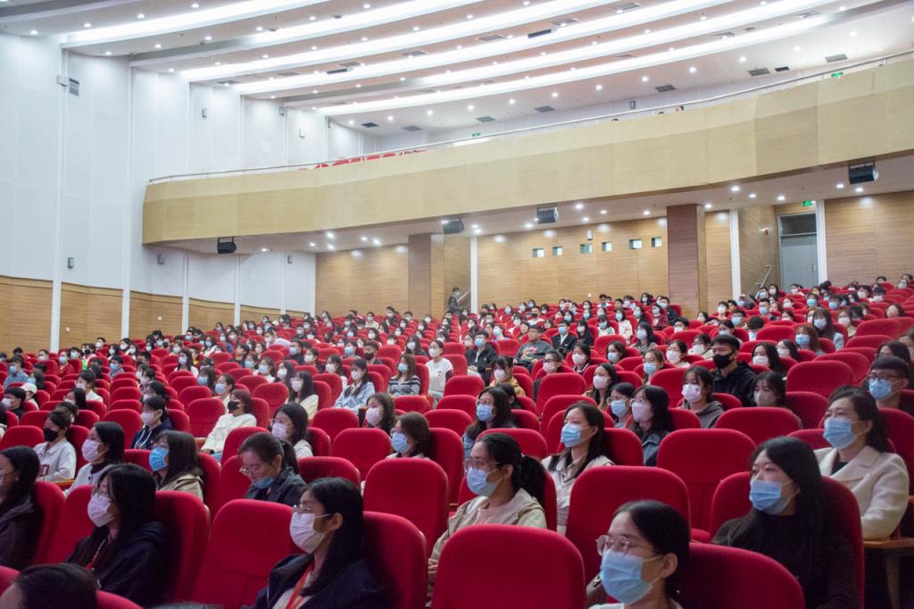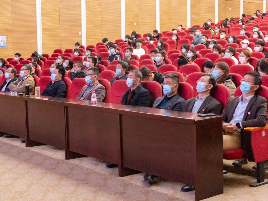 学校领导、全体党员、部分教师代表在千人礼堂集中观看直播