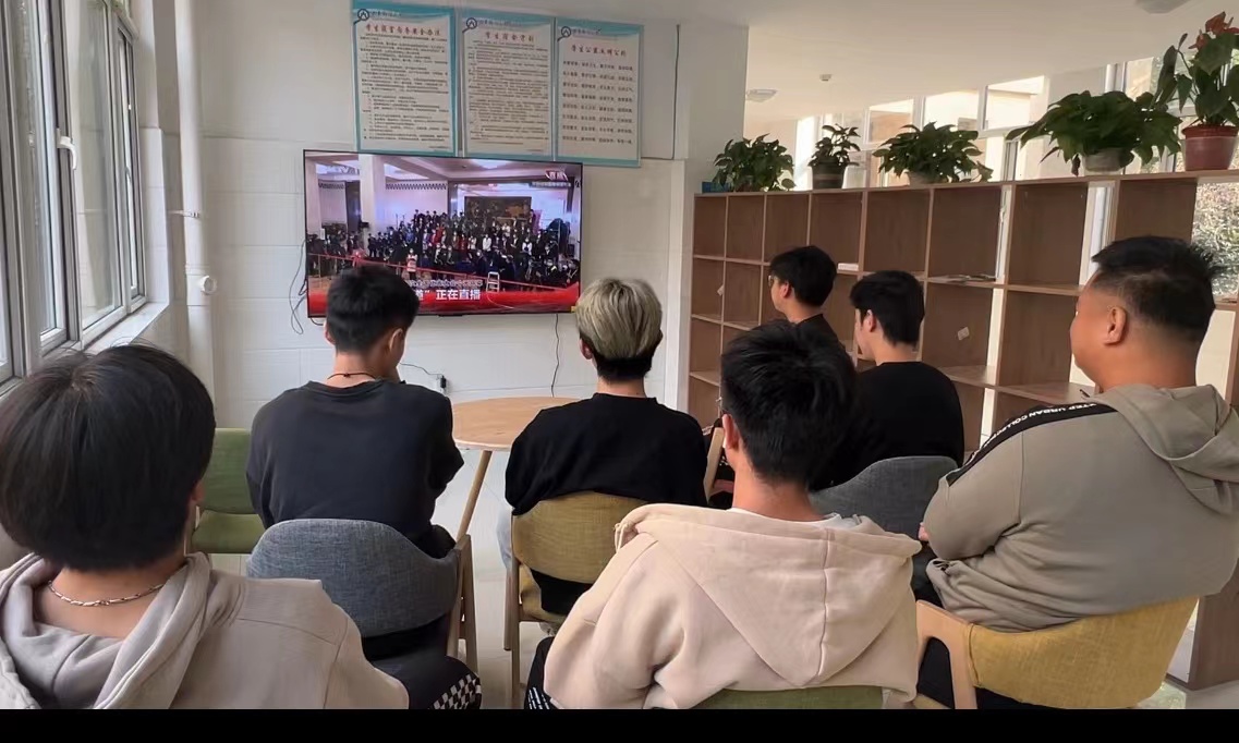 学生在教室、宿舍收看直播