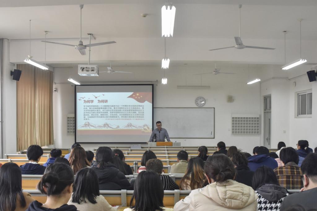 11月16日下午,我校在7302教室召开学习宣传贯彻党的二十大精神宣讲报告会。党委书记王松担任本次宣讲的主讲人,向第四、第五党支部宣讲党的二十大精神。