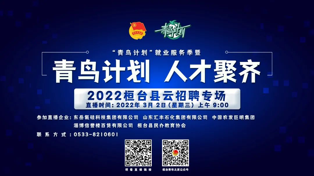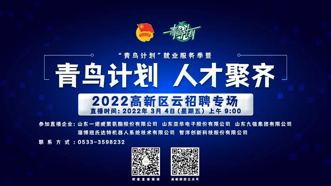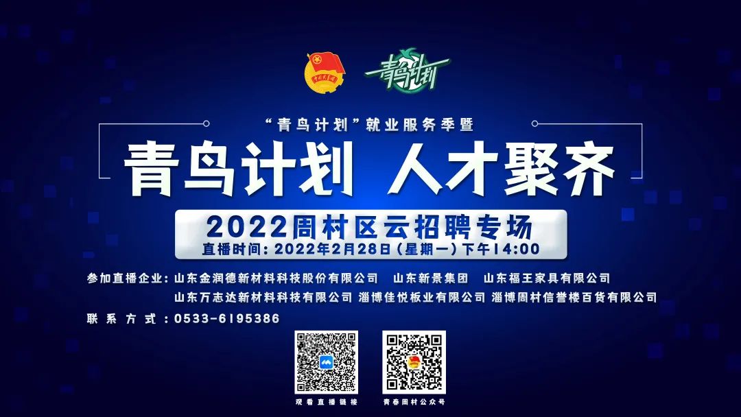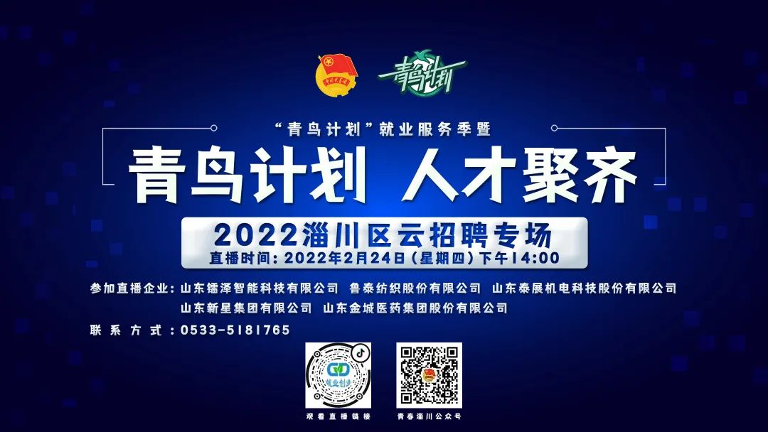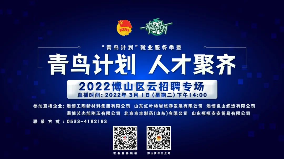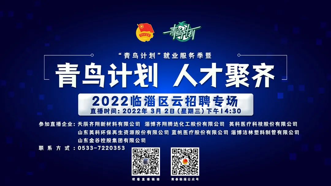 “青鸟计划”就业服务季暨“青鸟计划 人才聚齐”2022云招聘活动将进一步拓宽“云就业”渠道,吸引更多青年学子来淄就业,为淄博企业招揽人才,为全市招才引智工作大局做出更大贡献。