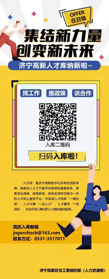 济宁高新区欢迎广大学子来区就业创业,新入职各类企业的全职工作博士研究生(年龄不超过 45 周岁),属首次在高新区就业的且由用人单位按规定缴纳社会保险的,3 年内按照每人每月 6000 元的标准给予引才补贴,3 年内在市内购买首套住房的,给予每人 20 万元购房补贴 , 其中对全球 TOP200 高校毕业博士研究生提高到 30 万元。新入职企业引进的全职工作硕士研究生(年龄不超过 35 周岁)、全日制学士本科生(含职业院校、技工院校全日制预备技师、技师班毕业生,年龄不超过 30 周岁),属首次在高新区就业且由用人单位按规定缴纳社会保险的,3 年内按照每人每月 2400 元、1200 元的标准给予引才补贴(符合“双一流”或原“211”“985” 院校条件的,分别再增加 1000 元);引进后 3 年内在区内购买首套住房的,再分别给予每人 6 万元、3 万元购房补贴。【联系人】:张老师,15063711065.