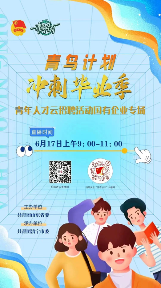 第四场国有企业专场招聘由共青团济宁市委承办,将于2022年6月17日9:00启动。