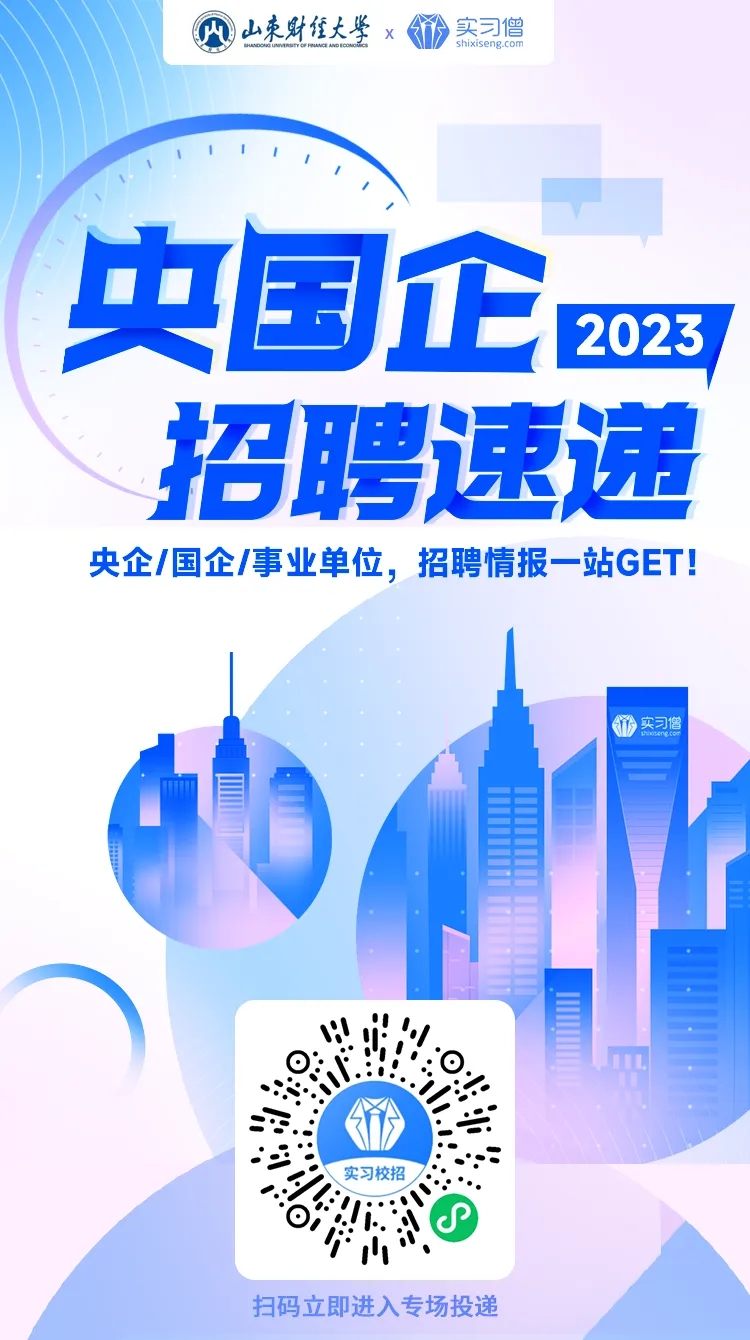 (山东财经大学)x 实习僧央国企招聘专场开启,超好福利+各类津贴,等你来投